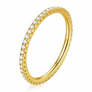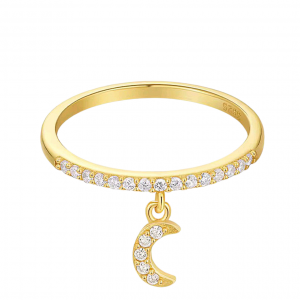 ANILLO DISEÑO CINTA HECHO EN PLATA 925 BAÑADA EN ORO 18K Y CRISTALES BLANCOS