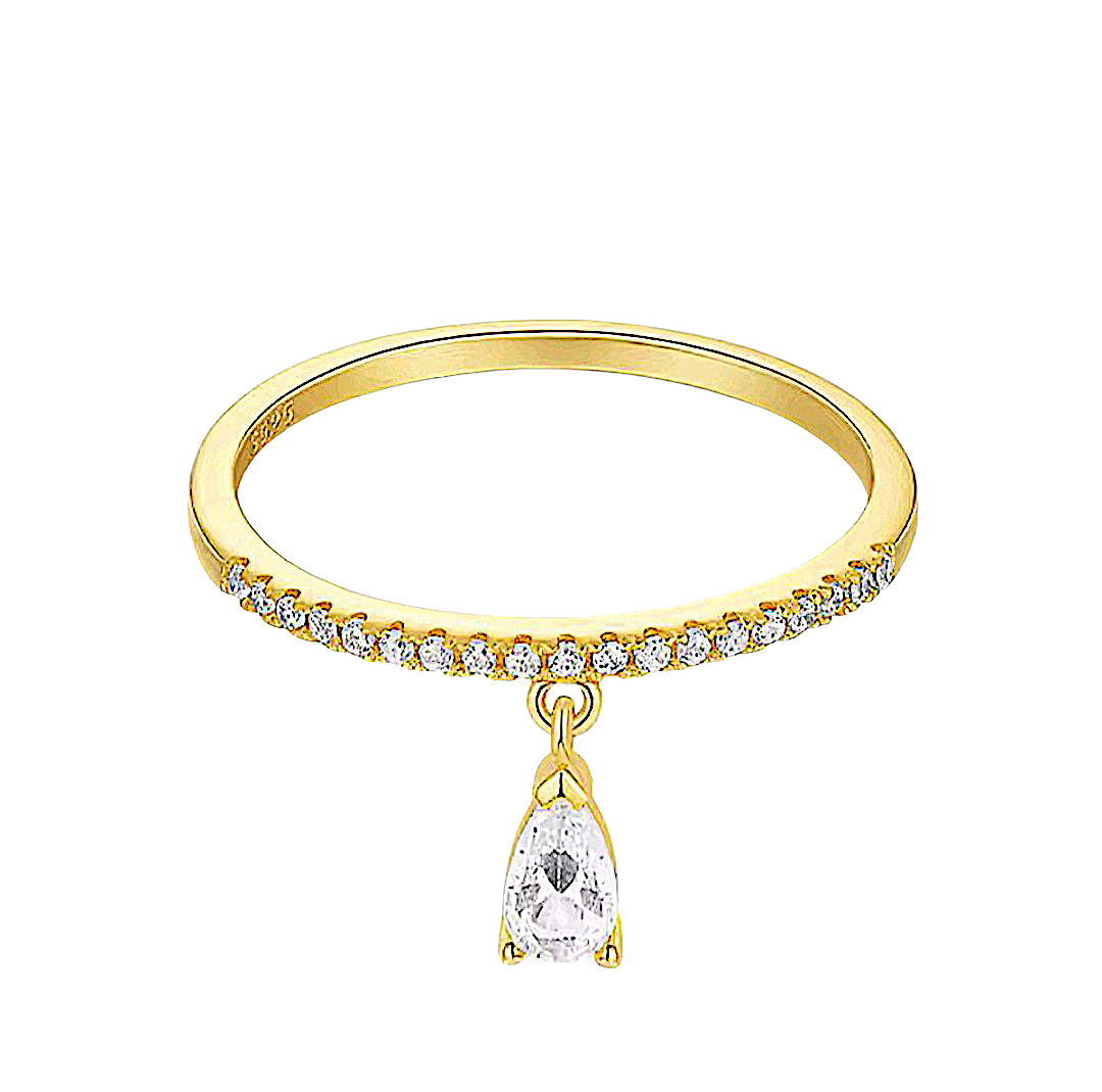 ANILLO DISEÑO CRISTAL COLGANTE HECHO EN PLATA 925 BAÑADA EN ORO 18K Y CRISTALES BLANCOS