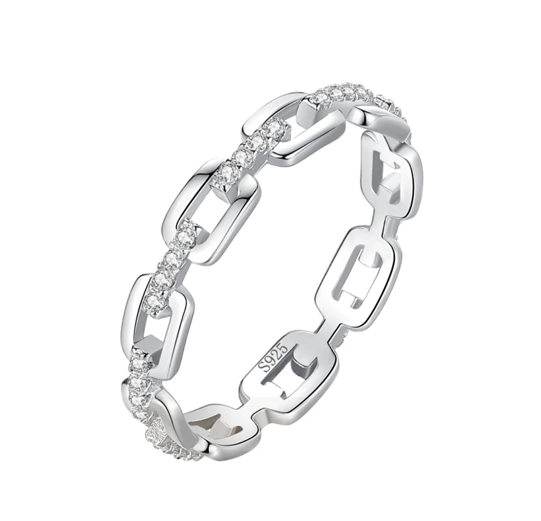 ANILLO DE PLATA LEY 925 Y CRISTALES DISEÑO CADENA