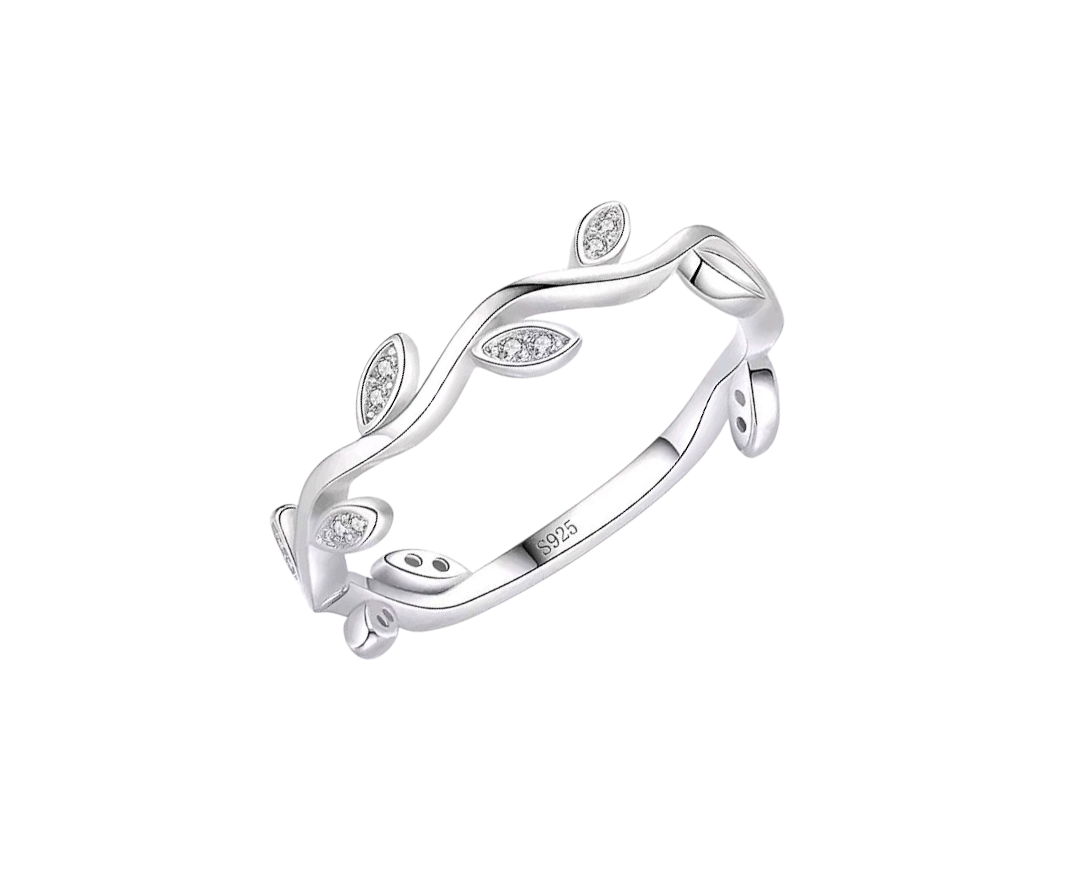 ESPECTACULAR E INCREIBLE ANILLO SINFIN HOJITAS HECHO DE PLATA 925 Y DELICADOS CRISTALES