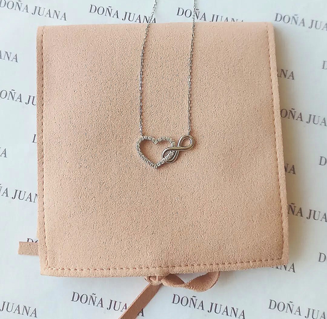 PRECIOSO Y DELICADO COLLAR DISEÑO INFINITO Y CORAZÓN. HECHO EN PLATA LEY 925 Y CIRCONES