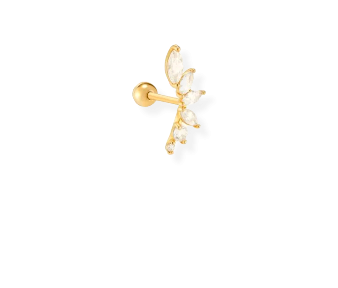 PRECIOSO PIERCING DE PLATA 925 BAÑADA EN ORO 18K Y CRISTALES BLANCOS