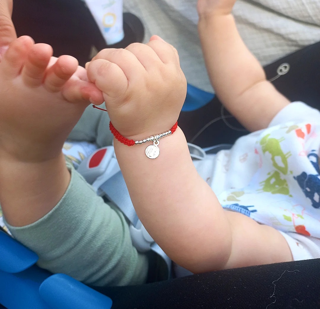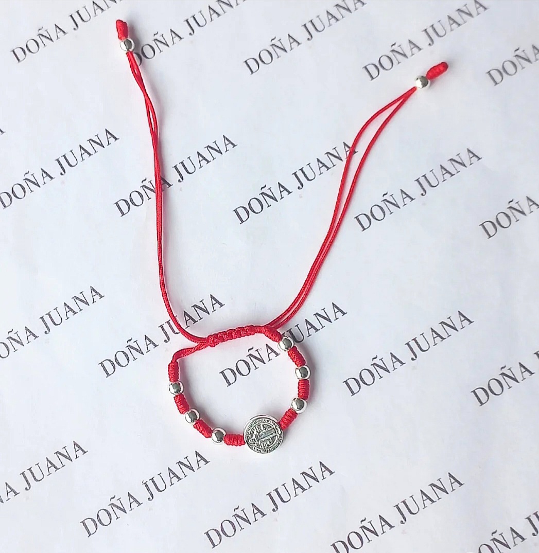 PULSERA PARA NIÑ@S DE PROTECCIÓN . HECHA EN HILO ROJO Y MEDALLA SAN BENITO.